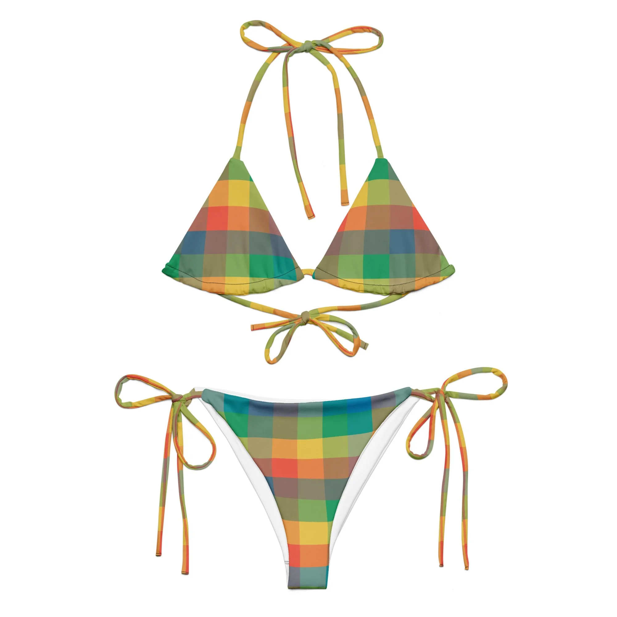 • To make your All-Over Print Recycled String Bikini last longer, thoroughly rinse it off after each use and get rid of any chlorine/salt residue.